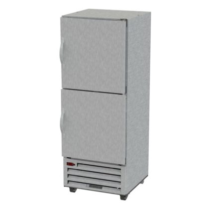 Refrigerator, Pass-Thru, one-section,18.38 cu. ft., (4) solid hinged half doors, (4) adjustable shelves, LED interior lighting, bottom-mounted self-contained refrigeration, stainless steel exterior & interior, 3″ casters, R290 Hydrocarbon refrigerant, 1/4 HP, cULus, UL EPH Classified, UL-Sanitation, Made in USA