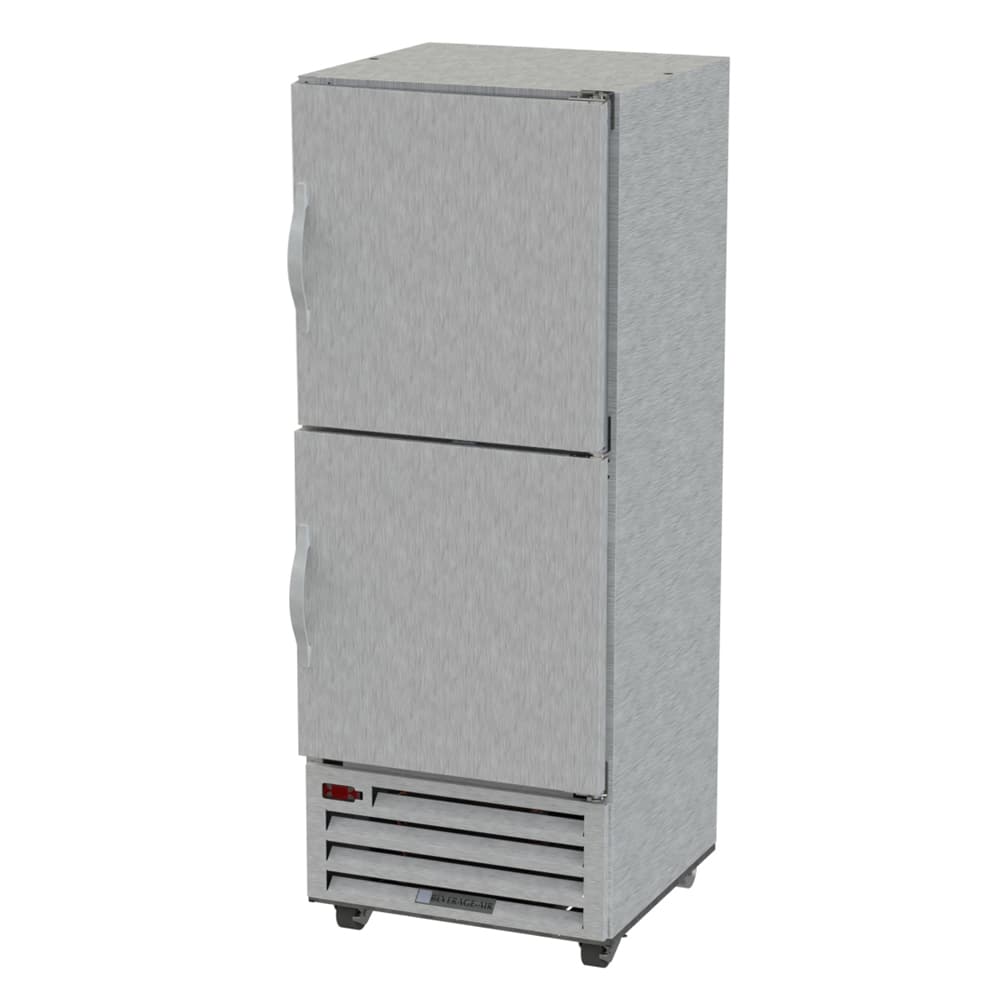 The Beverage Air RID18HC-HS pass-thru reach-in refrigerator has four solid half doors that allow staff to access the interior from both sides of the unit. They have a stay-open feature where the doors stay open past 120 degrees for stocking the cabinet. To prevent cold air from being released, the doors will shut by themselves.