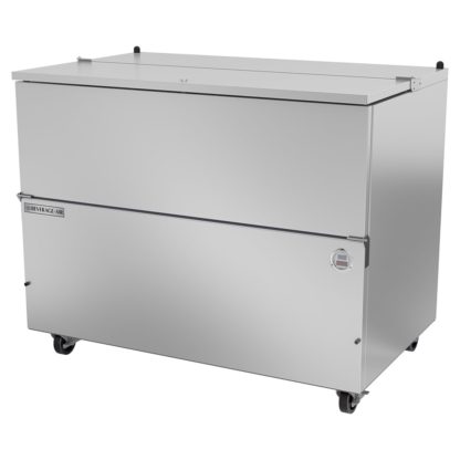 School Milk Cooler, cold wall, normal temperature, 49″W x 30-5/8″D x 41-1/8″H, 20.32 cu. ft., single access, flat top carton capacities, (12) 13″ x 13″ x 11″ or (8) 19″ x 13″ x 11″ case capacity, self-latching doors/lids with safety bumpers, cylinder lock, wire floor racks, floor drain, electronic control, auto defrost, stainless steel interior & exterior, R290 Hydrocarbon refrigerant, 1/3 HP, cULus, UL EPH Classified, UL-Sanitation, Made in USA