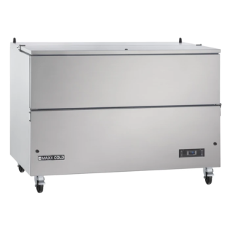School Milk Cooler, forced air, 58″W, 33-1/2″ D, 24 cu. ft., single access, exterior digital thermometer, flat top carton capacities, (16) 13″ x 13″ x 11″ or (10) 19″ x 13″ x 11″ case capacity, white exterior, stainless steel interior, R290 Hydrocarbon refrigerant, 1/3 HP, UL, cULus, UL EPH, NSF, MADE IN USA