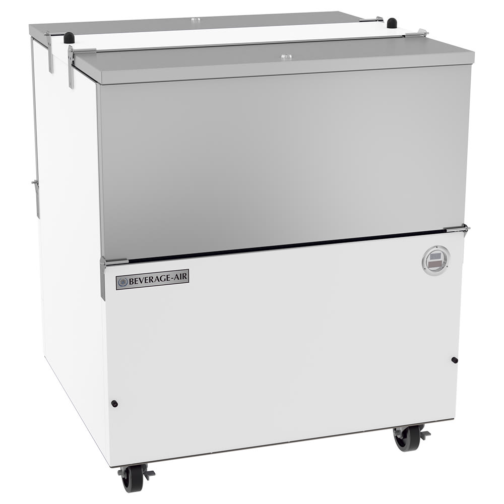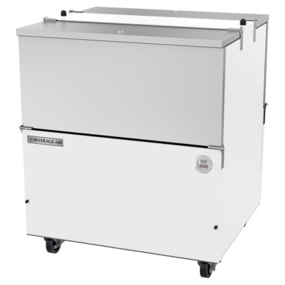 The Beverage Air ST34HC-W milk cooler ensures milk cartons are kept at a safe, appetizing serving temperature. Controlled electronically, the unit’s temperature varies between 36 and 38 degrees Fahrenheit. Users can check the interior conditions with the external digital thermometer.