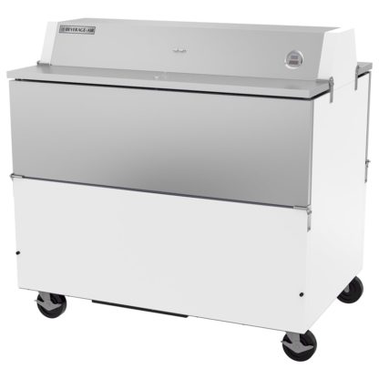 The Beverage Air STF49HC-1-W-02 milk cooler’s interior has 20.55 cubic feet of space, so it can hold 12 crates of milk. Users can reach into the unit from either side because of its dual-access design, and the doors have safety bumpers. To protect products against theft and tampering, employees can lock the cooler when it’s not in use.