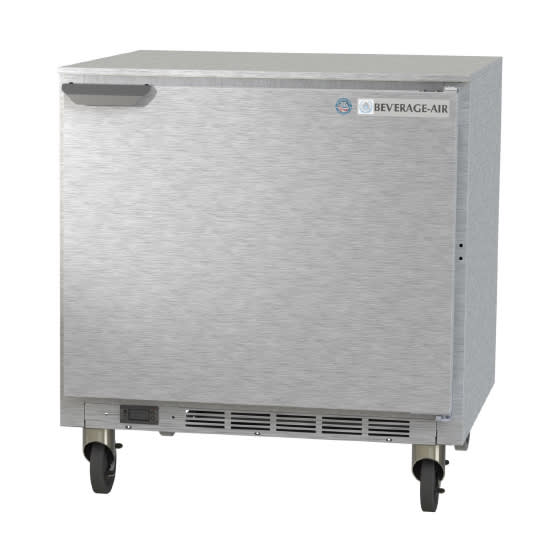 To ensure a long lifespan with intensive use, the Beverage Air UCF32AHC undercounter freezer features a primarily stainless steel construction that has a single section and one removable, field-reversible door. For durability and corrosion resistance, this unit’s two wire shelves are coated with epoxy.