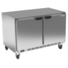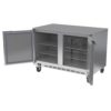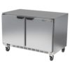 Providing operators full electronic control, the Beverage-Air UCF48AHC undercounter freezer features a 1/2-inch-thick sub-top. This unit has an interior thermometer and self-closing doors that stay open at 120 degrees; these doors have cartridge-style hinges and can be removed easily for cleaning and servicing. For a positive seal, magnetic gaskets are attached to each door, and they’re equipped with painted aluminum door handles. The undercounter freezer is constructed with four 6-inch casters, two of which have brakes for stationary uses.