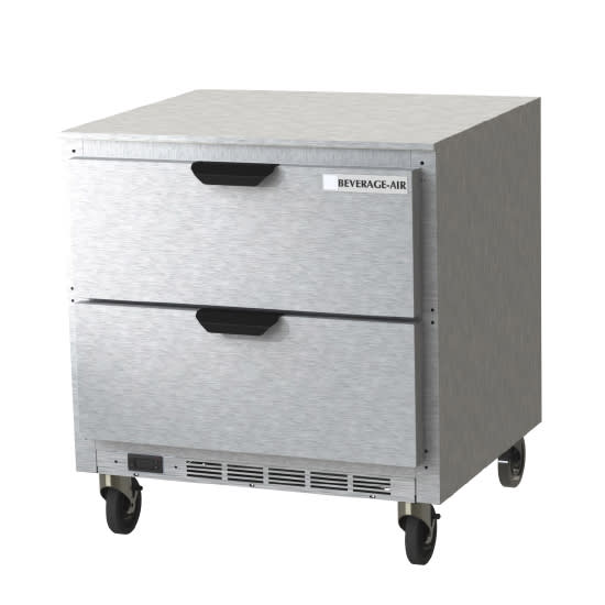 Undercounter Freezer, one-section, 32″W, 7.2 cu. ft., (2) drawers, stainless steel exterior front, sides, drawers & top, aluminum interior, rear-mounted self-contained refrigeration, R290 Hydrocarbon refrigerant, 1/3+ HP, cULus, UL EPH Classified, UL-Sanitation, MADE IN USA