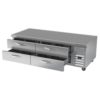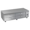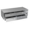 Worktop Cook Stand Freezer, two-section, 72″W, 14.51 cu. ft., (4) drawers, top drawer holds (2) 12″ x 20″ x 6″ pans & bottom drawer holds (2) 12″ x 20″ x 6″ pans (NOT included), digital display, fire-proof stainless steel top, front & sides (no heat shield required), full marine drip guard, aluminum interior, expansion valve technology, self-contained refrigeration, R290 Hydrocarbon refrigerant, 3/4 HP, cULus, UL EPH Classified, UL-Sanitation, Made in USA