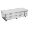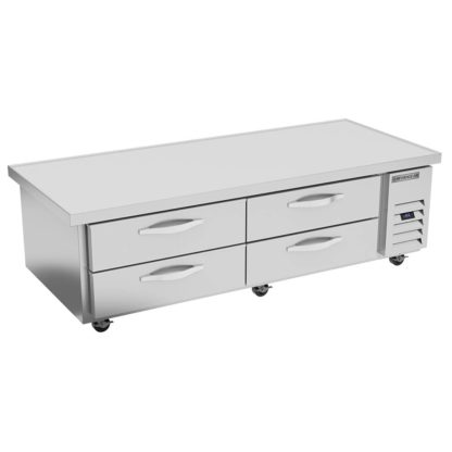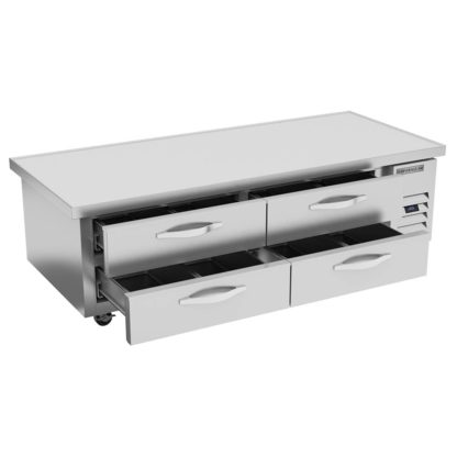 Worktop Cook Stand Freezer, two-section, 76″W, 14.51 cu. ft., (4) drawers, top drawer holds (2) 12″ x 20″ x 6″ pans & bottom drawer holds (2) 12″ x 20″ x 6″ pans (NOT included), digital display, fire-proof stainless steel top, front & sides (no heat shield required), full marine drip guard, aluminum interior, expansion valve technology, self-contained refrigeration, 3/4 HP, cULus, UL EPH Classified, UL-Sanitation, Made in USA