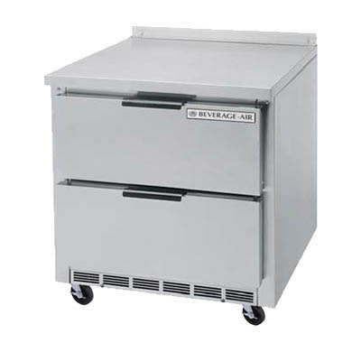 With a stainless steel top and low height, the Beverage Air WTFD36AHC-2 worktop freezer provides cramped kitchens with additional prep space. When inactive, it can be rolled out of the way on its four 6-inch casters and stored compactly. Its interior thermometer tracks the temperature and electronic controls give users precise control of adjustments.