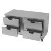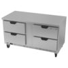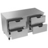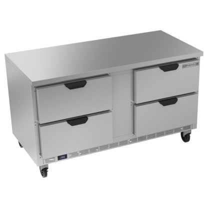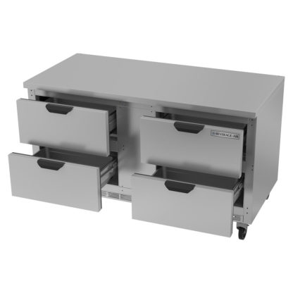 Worktop Freezer, two-section, 60″W, 14.39 cu. ft., (4) drawers, stainless steel front, 2-1/2″ thick top & sides, aluminum interior, flat top, rear-mounted self-contained refrigeration, R290 Hydrocarbon refrigerant, 1/2 HP, cULus, UL EPH Classified, UL-Sanitation, MADE IN USA