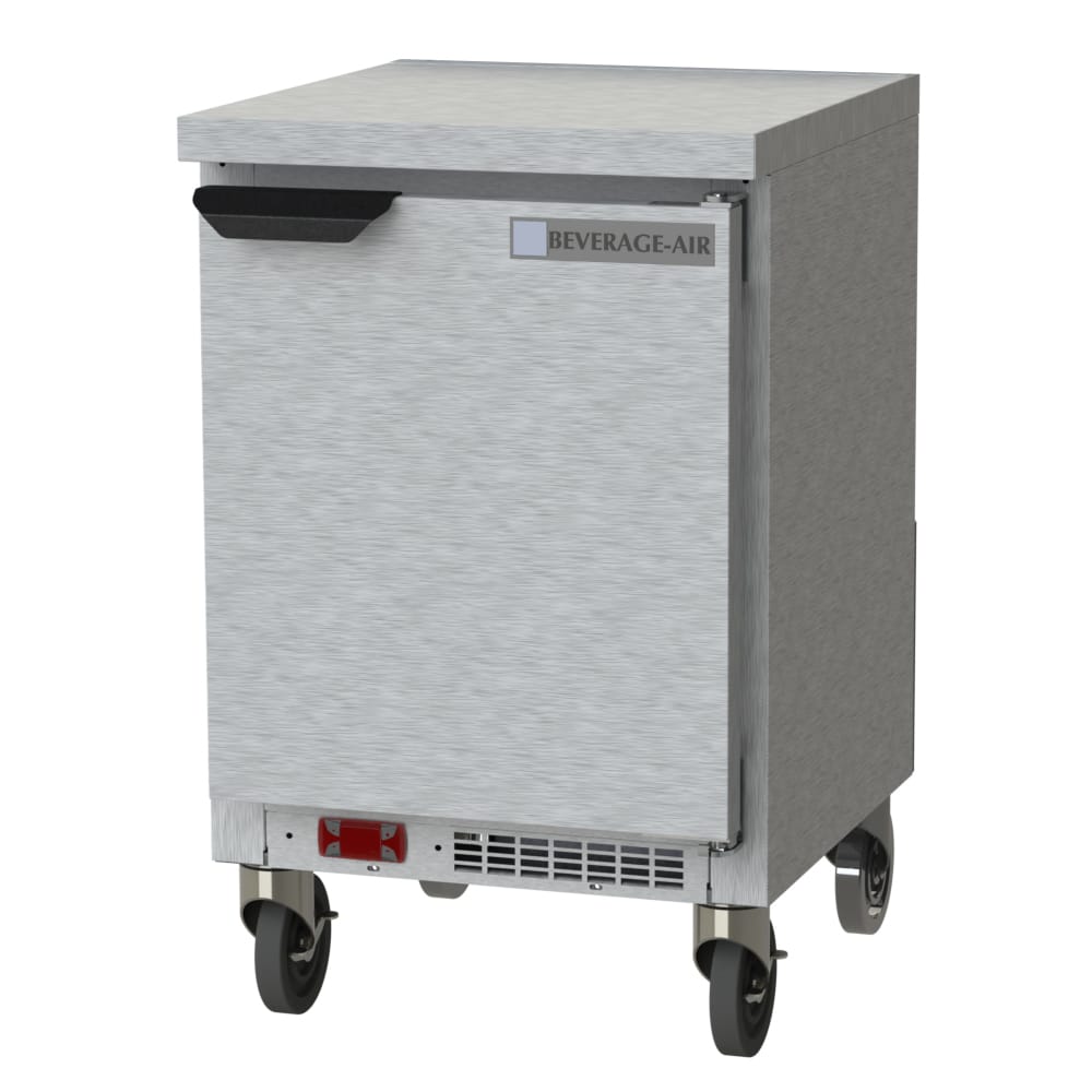 The sides, top, and front of the Beverage Air WTR20HC-FLT worktop refrigerator are constructed of resilient stainless steel, ensuring a long lifespan with intensive use. It offers 2.25 cubic feet of interior space and features a single field-reversible, self-closing door. This unit cools using eco-friendly R290 refrigerant and features an epoxy-coated evaporator coil to provide resistance to corrosion.
