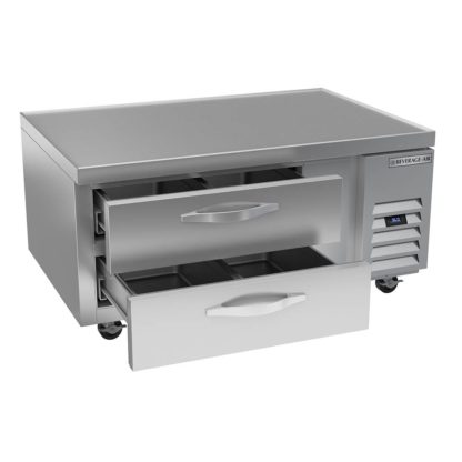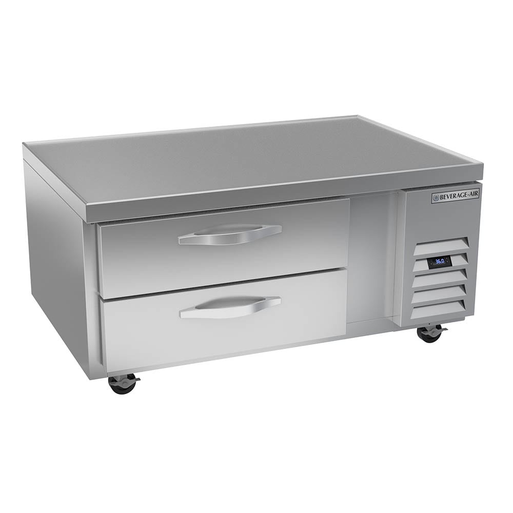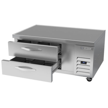 Because it’s constructed primarily of stainless steel, the exterior of the Beverage Air WTRCS48HC chef base can withstand heavy use without denting or warping. It features a full marine edge to prevent messes from dripping off the sides, streamlining cleanup and protecting surrounding equipment. This unit is mounted on casters, enabling users to wheel it between locations as needed.