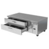Worktop Cook Stand Refrigerator, one-section, 60″W, 10.29 cu. ft., (2) drawers, top drawer holds (3) 12″ x 20″ x 6″ pans & bottom drawer holds (3) 12″ x 20″ x 6″ pans (NOT included), fire-proof stainless steel top, front & sides (no heat shield required), full marine drip guard, aluminum interior, side-mounted self-contained refrigeration, R290 Hydrocarbon refrigerant, 1/3 HP, cULus, UL EPH Classified, UL-Sanitation, Made in USA