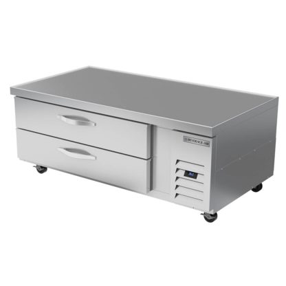 The Beverage Air WTRCS60HC chef’s base refrigerator features a self-contained, side-mounted refrigeration system. Inside, the unit has a lightweight, galvanized aluminum liner that resists corrosion from exposure to salt, moisture, and acidic foods. For user convenience, this chef base doesn’t require a heat shield for safe operation. However, installation must adhere to clearance recommendations to ensure optimal performance.