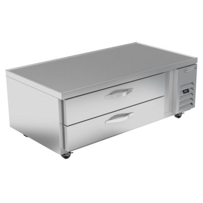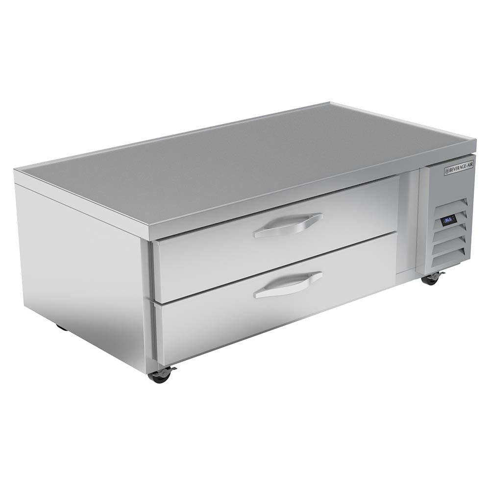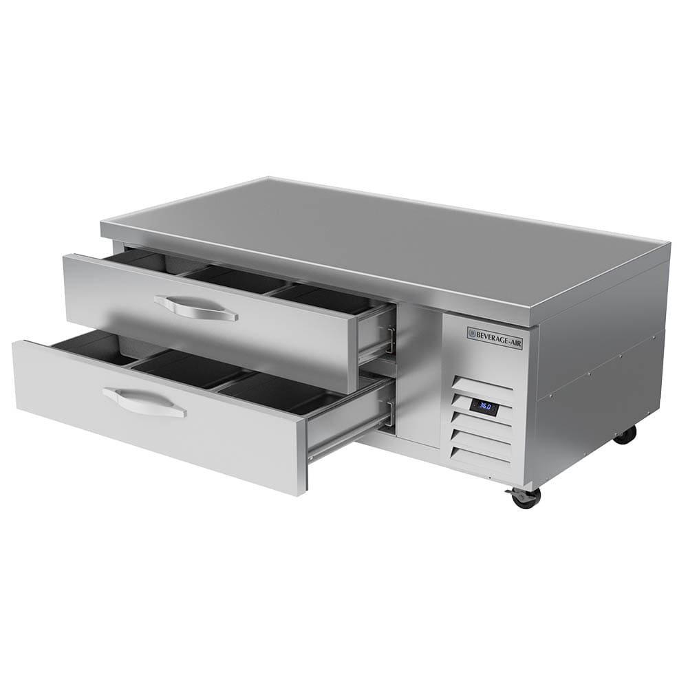 For convenient access, the Beverage Air WTRCS60HC worktop chef’s stand refrigerator holds vital ingredients within arm’s reach of ranges and prep areas, streamlining workflows. Each of the two drawers is large enough to accommodate three full-size sheet pans and can support 275 pounds for intensive use in high-volume environments. This unit’s heavy-duty construction also features a fire-resistant, insulated, reinforced stainless steel top with a full marine edge to prevent dripping.