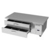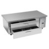 Worktop Cook Stand Refrigerator, one-section, 64″W, 10.29 cu. ft., (2) drawers, top drawer holds (3) 12″ x 20″ x 6″ pans & bottom drawer holds (3) 12″ x 20″ x 6″ pans (NOT included), fire-proof stainless steel top, front & sides (no heat shield required), full marine drip guard, aluminum interior, side-mounted self-contained refrigeration, R134a refrigerant, 1/3 HP, cULus, UL EPH Classified, UL-Sanitation, Made in USA