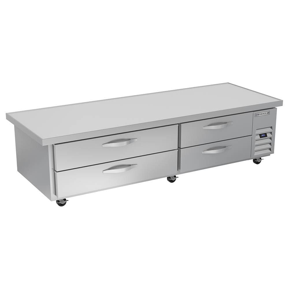 To ensure corrosion resistance during daily exposure to moisture, the Beverage Air WTRCS84HC-89 chef base features an aluminum interior and an epoxy-coated evaporator coil. Its exterior is constructed principally of stainless steel, a resilient metal that can withstand intensive use without warping, dents, or scratching. To streamline cleaning, it’s designed with a full marine edge that prevents spills from dripping over the sides.