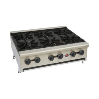 This Black Diamond BDCTH24 countertop hot plate is mounted on four legs that can be adjusted to the operator’s desired height. Its manual control knobs are protected by a bull-nose front to shield users’ hands from heat or grease splatter. The unit can be powered by natural gas or LP gas.
