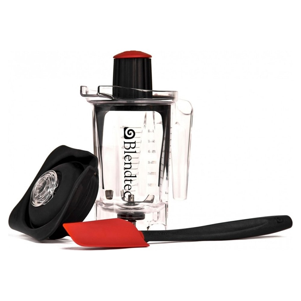 The Blendtec 40-711-15 Twister jar is for single-serve drinks, crumbs, hummus, and more. It operates with a counter-clockwise twisting motion that forces items toward the heavy-duty, 3-inch wingtip blade. Made of lightweight and impact-resistant copolyester, the jar is clear so the contents can be seen. It has a 37-ounce capacity and markings on the side to measure items to 16 ounces. It works with Blendtec consumer blender units with or without a sound enclosure, and the Blendtec 40-711-15 Twister jar comes with a Spectacula spatula that enables operators to get all of the contents out of the jar.