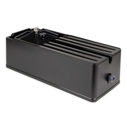 The Blendtec RRS rapid rinser station comes with a sprayer and base and is designed to clean blender jars to save time and minimize employee contact with sanitizers. To activate the sprayer, the user gently presses down. A stainless steel nozzle facilitates operation, and it covers a maximum of 70 percent on containers with a diameter of 8 inches or less. The flexible, nylon-reinforced 6-foot tube has a 3/8-inch compression fitting that enables water hook up, and a closed valve system prevents water leakage if the pressure drops. The Blendtec RRS rapid rinser station fits on the countertop next to a blender and can be used with multiple stacked containers.
