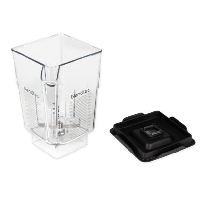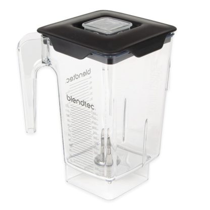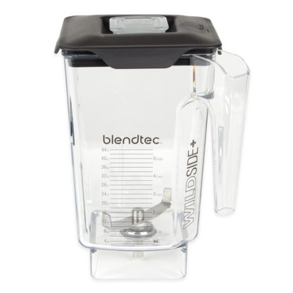The Blendtec 40-630-60 WILDSIDE-V blender jar has a 4-inch, tuned wingtip blade that is 10 times stronger and 80 percent thicker than other blades. The patented fifth side to this wide-bottomed jar makes blending faster by 25 percent. The clear jar makes contents easy to see, and with the co-polyester material, shattering is resisted. The capacity of the jar is 3 quarts or 90 ounces. Markings on the side of the jar come in ounces, cups, and milliliters and have numbers up to 44 ounces. The Blendtec 40-630-60 WILDSIDE-V blender jar is compatible with all Blendtec models except the mixers.