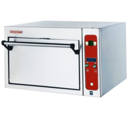 The Blodgett 1415 countertop pizza oven is a single-deck oven that includes the base only and doesn’t come with legs. It can cook product at temperatures from 150 to 500 degrees Fahrenheit and is insulated with 1 inch of mineral fiber on the top, bottom, back and sides to conserve heat. For straightforward operation, its display is digital, while a 12-hour timer with audible alerts is built in to track cooking times.
