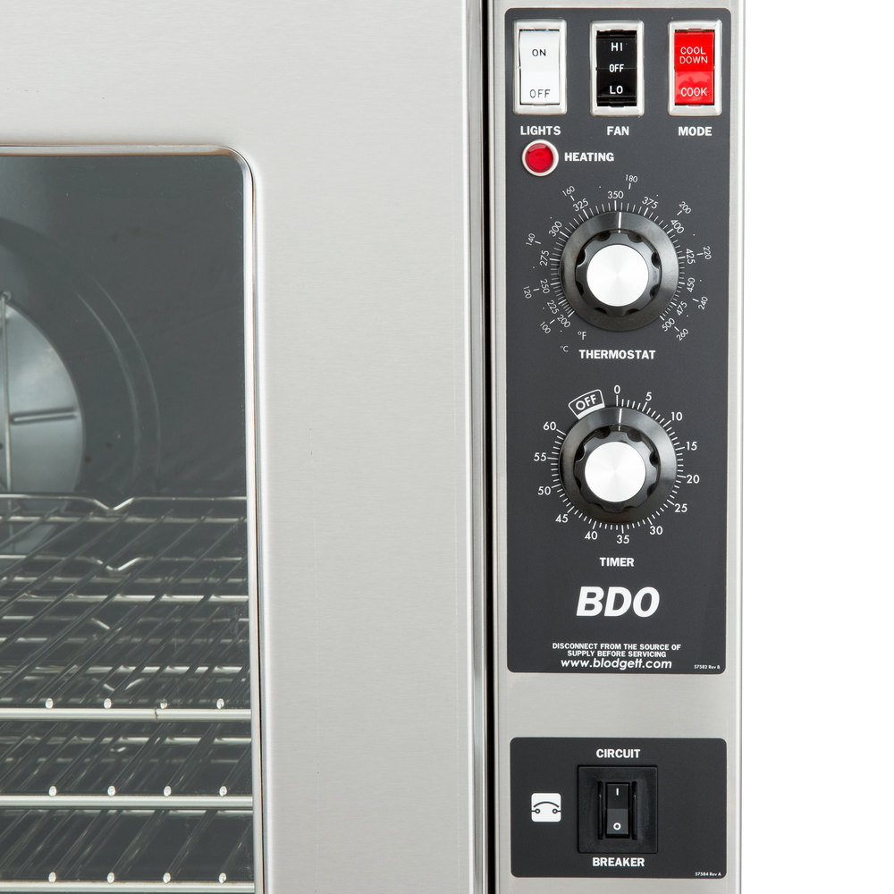 Cooking your restaurant’s most famous ribs, braised steaks, chicken, and bread will never be easier than with this Blodgett BDO-100-E single deck full size electric convection oven! Boasting a sturdy iron frame with a stainless steel top and 25″ adjustable legs, this oven is sure to provide functionality to your kitchen while operating smoothly and productively. It features solid state manual controls with an electro-mechanical 60 minute timer for easy adjustment and monitoring of popular food items.