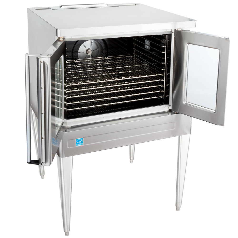 Thanks to a two speed fan and 1/2 hp blower motor, this convection oven efficiently recirculates heated air through its interior compartment, which reduces energy consumption and increases performance. This system offers a cost-effective way of cooking your product at a lower temperature for a shorter amount of time, allowing you to get food to the tables faster.