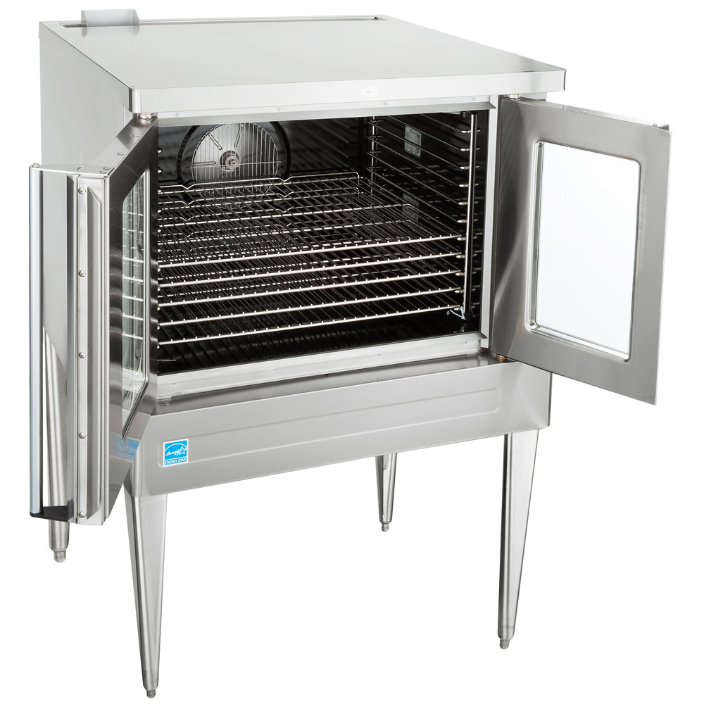 Thanks to a two speed fan and 3/4 hp blower motor, this convection oven efficiently recirculates heated air through its interior compartment, which reduces energy consumption and increases performance. This system offers a cost-effective way of cooking your product at a lower temperature for a shorter amount of time, allowing you to get food to the tables faster.