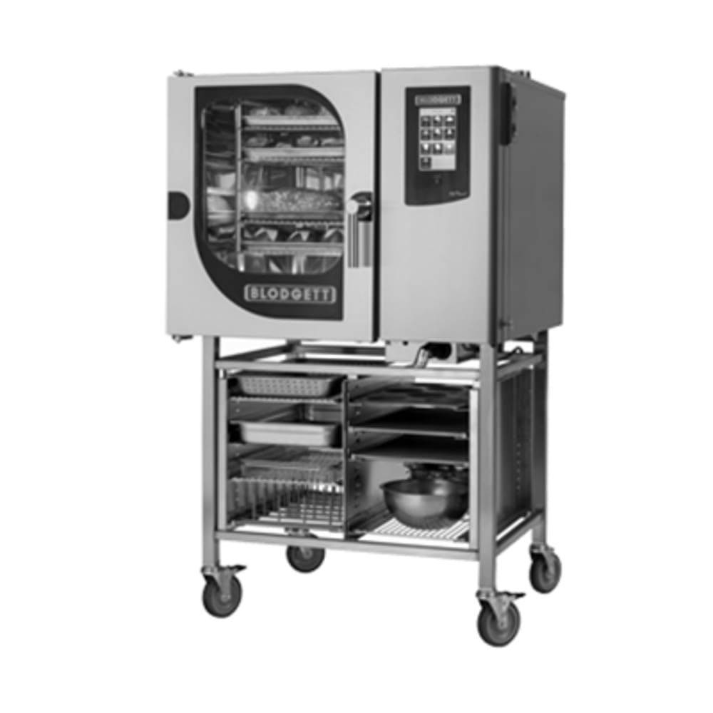 Combi Oven Steamer, gas, boilerless, (5) 12″ x 20″ full size hotel pan capacity, touch screen controls, multiple cooking modes, stores up to 500 recipes, external temperature probe, USB port, HACCP, automated CombiWash, reversible 9-speed fan, glass door, door mounted drip tray, 31-1/2″ tall stand with runners & adjustable feet, stainless steel exterior & interior, 58,000 BTU, cETLus, ETL-Sanitation, CE