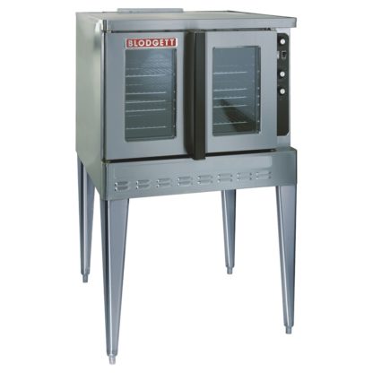 The Blodgett DFG-100 commercial convection oven’s extensive stainless steel endures scraping and denting, making it great for long-term use in a commercial kitchen. Its stainless steel legs stabilize the unit and can be adjusted to account for uneven surfaces. In order to offer a look at what’s cooking in the oven and prevent heat loss when opening the door, the door is glass paned.