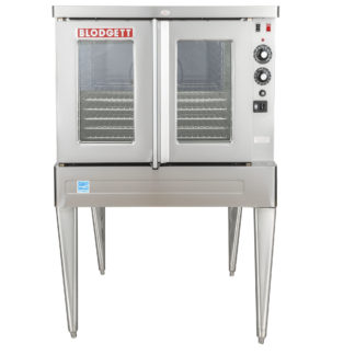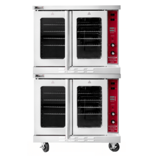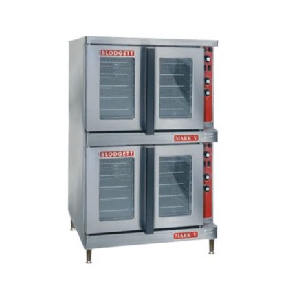 Constructed out of stainless steel, the Blodgett MARK V-100 DBL convection oven will be able to handle consistent usage. The stainless steel door frame holds double-paned thermal windows, which will be sure to keep hot air in the cabinet. The powder coated handle is easy to grasp and opens both doors at the same time. The door is triple-mounted and guarantees it will remain closed with a tight seal during operation. The chamber, which also boasts stainless steel construction, is lined with porcelain on both sides of the walls. Aluminized steel is used for the base of the combustion chamber and has a dual inlet blower wheel. The interior halogen lights lets you clearly see how well things are cooking. There are 11 potential rack positions for you to organize pans. The oven uses three tubular heater that raises temperatures that will range between 200°F and 500°F. The solid state digital controls help accurately set temperatures. The fan has two speeds and the motor has a built-in thermal overload protection.