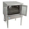 The chrome-plated door handle provides a comfortable grip when opening and closing the dependent stainless steel doors, which are tightly secured to the frame with triple-mounted door hinge pins. The interior features five chrome-plated racks that can be configured into eleven rack positions with a minimum of 1 5/8″ spacing to ensure that you are getting the most out of your oven space. This oven also has the capacity to hold up to (5) 18″ x 26″ standard full size baking pans. A 14 gauge double-sided porcelainized baking compartment liner allows for easy clean up of your unit. As an added benefit, the interior is illuminated, giving you the ability to check on your product without opening the doors and letting excess heat escape.