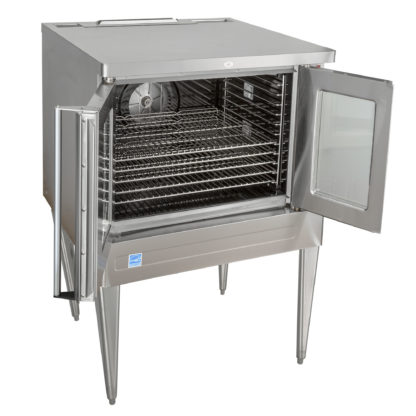 The oven has three tubular heaters that are controlled by an electromechanical thermostat with a temperature range from 200 – 500 degrees Fahrenheit, which gives you the ability to prepare a wide variety of products. For safety, the blower motor has an automated thermal overload protection mechanism and a control area cooling fan. It requires a 220/240V, 1 phase electrical connection.