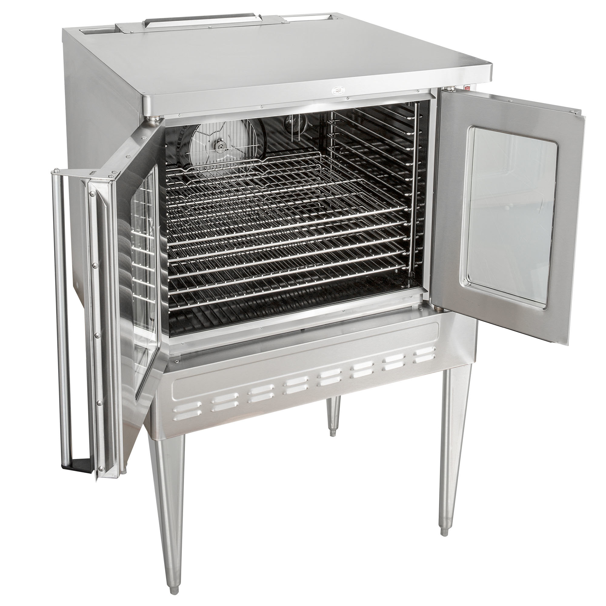 Thanks to a two speed fan and 1/2 hp blower motor, this convection oven efficiently recirculates heated air through its interior compartment, which reduces energy consumption and increases performance. This system offers a cost-effective way of cooking your product at a lower temperature for a shorter amount of time, allowing you to get food to the tables faster.