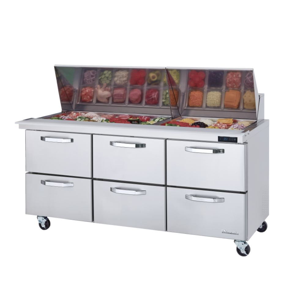 - Standard 1/6 / 4” food pans are provided. Unit accommodates 6″ deep pans (not included)