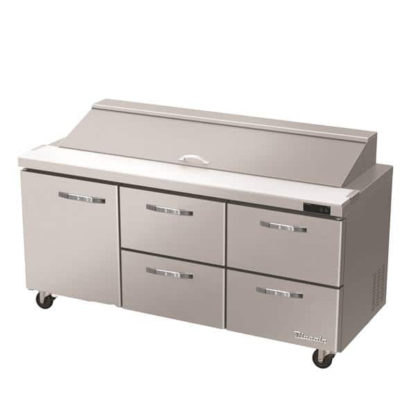 Blue Air BLPT72-D4RM-HC 4 Drawers 1 Door (L) All Stainless Prep Table with (18) 1/6 Pans – 72″W, 20 Cu./Ft., R-290 Refrigerant