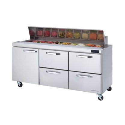 Blue Air BLPT72-D4RM-HC 4 Drawers 1 Door (L) All Stainless Prep Table with (18) 1/6 Pans – 72″W, 20 Cu./Ft., R-290 Refrigerant