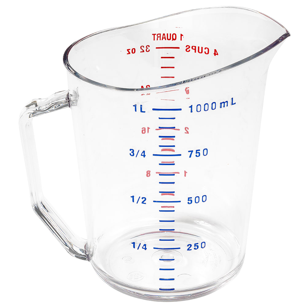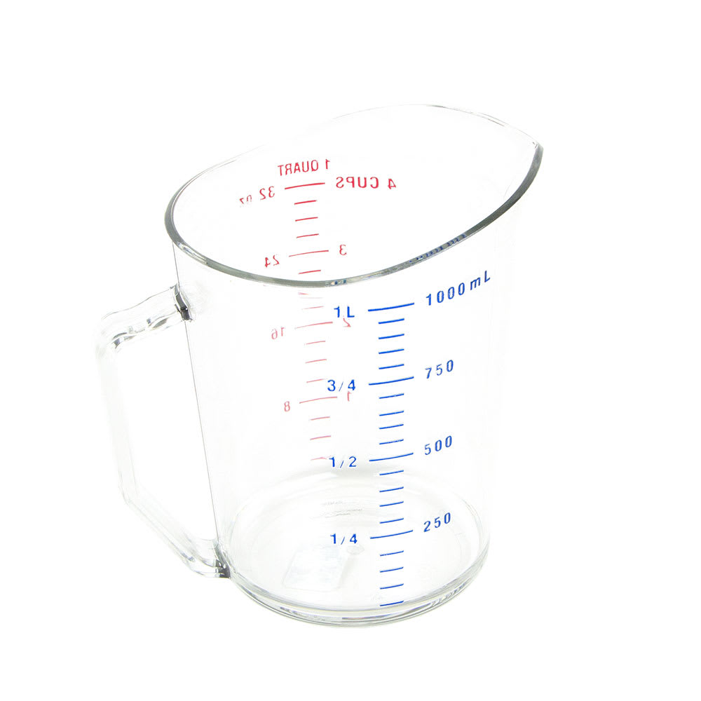 Camwear Measuring Cup, 1 qt., molded handle, dishwasher safe, polycarbonate, clear, NSF