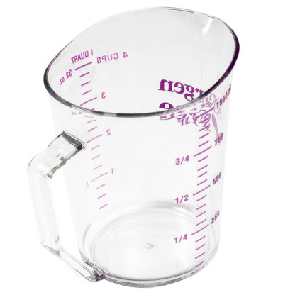 Camwear Measuring Cup, 1 quart, clear, allergen-free purple graduations, allergen-free logo imprinted, polycarbonate, molded handle, dishwasher safe, NSF