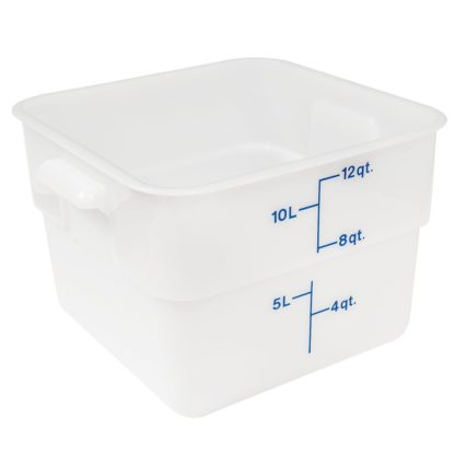 CamSquare Food Container, 12 qt., 11-1/4″L x 12-1/4″W x 8-5/16″H, with handles, blue graduation, polyethylene, dishwasher safe, resists stains & odors, natural white, NSF