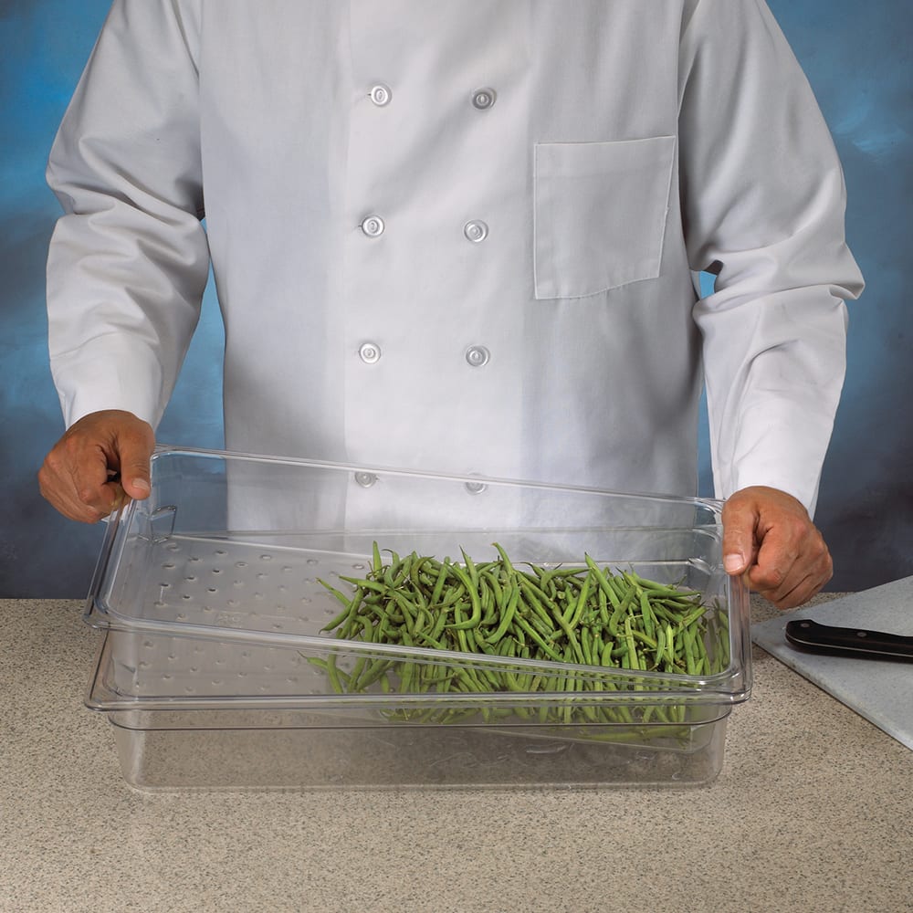 Camwear Colander, 12-3/4″ x 20-7/8″ x 3″ deep, fits 1/1 size food pans, polycarbonate, clear, NSF