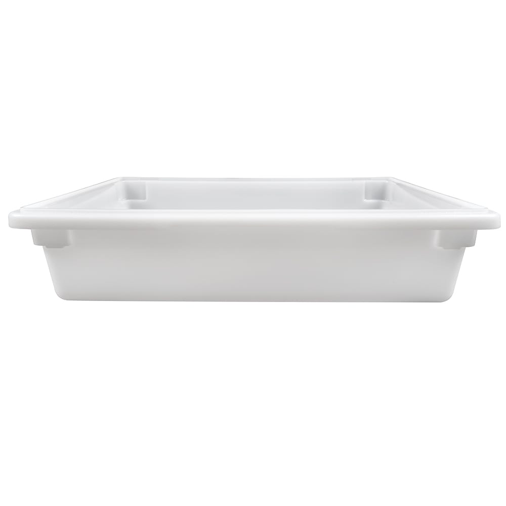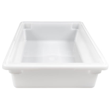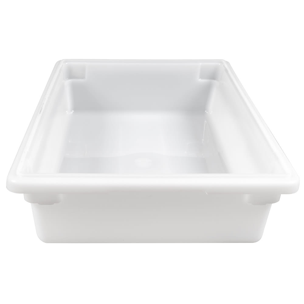 The Cambro 18266P148 food storage container is made of polyethylene to resist damage from chemicals and impacts. It maintains a professional appearance since the material is stain and odor resistant. Molded-in handles make it easy to carry and transport the storage box. With its white material, the Cambro 18266P148 food storage container can be used in a variety of applications.