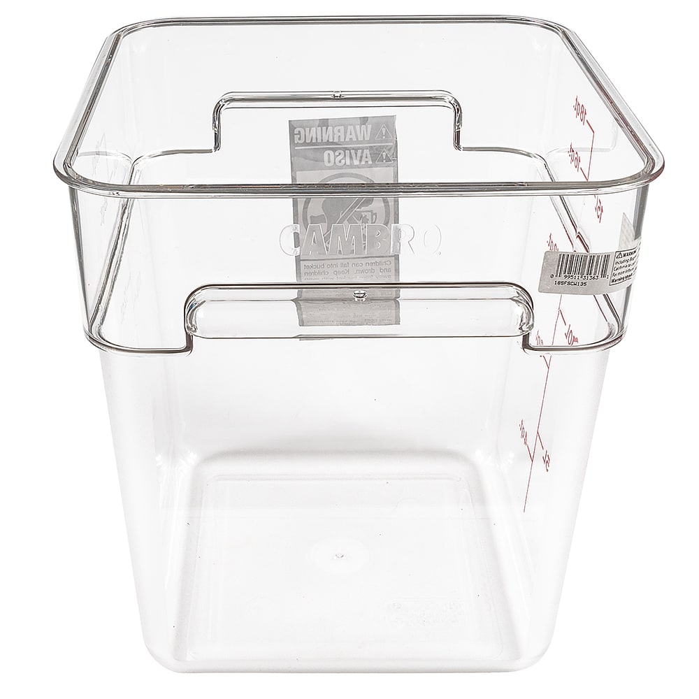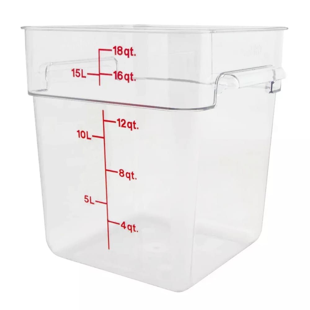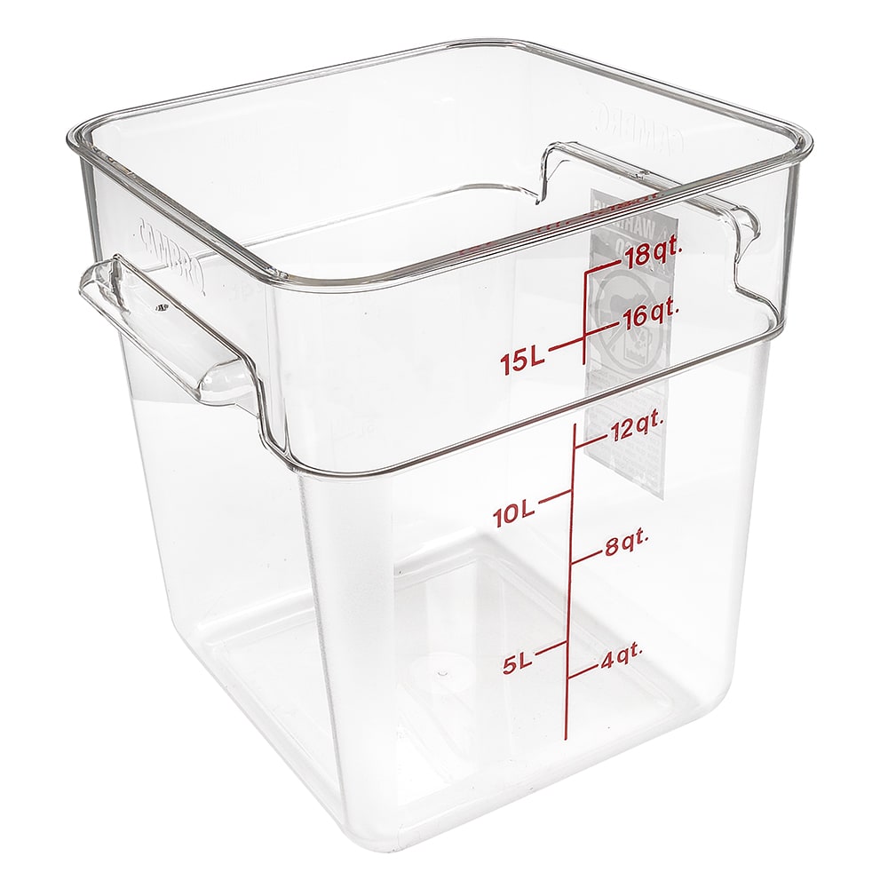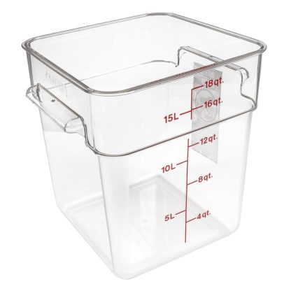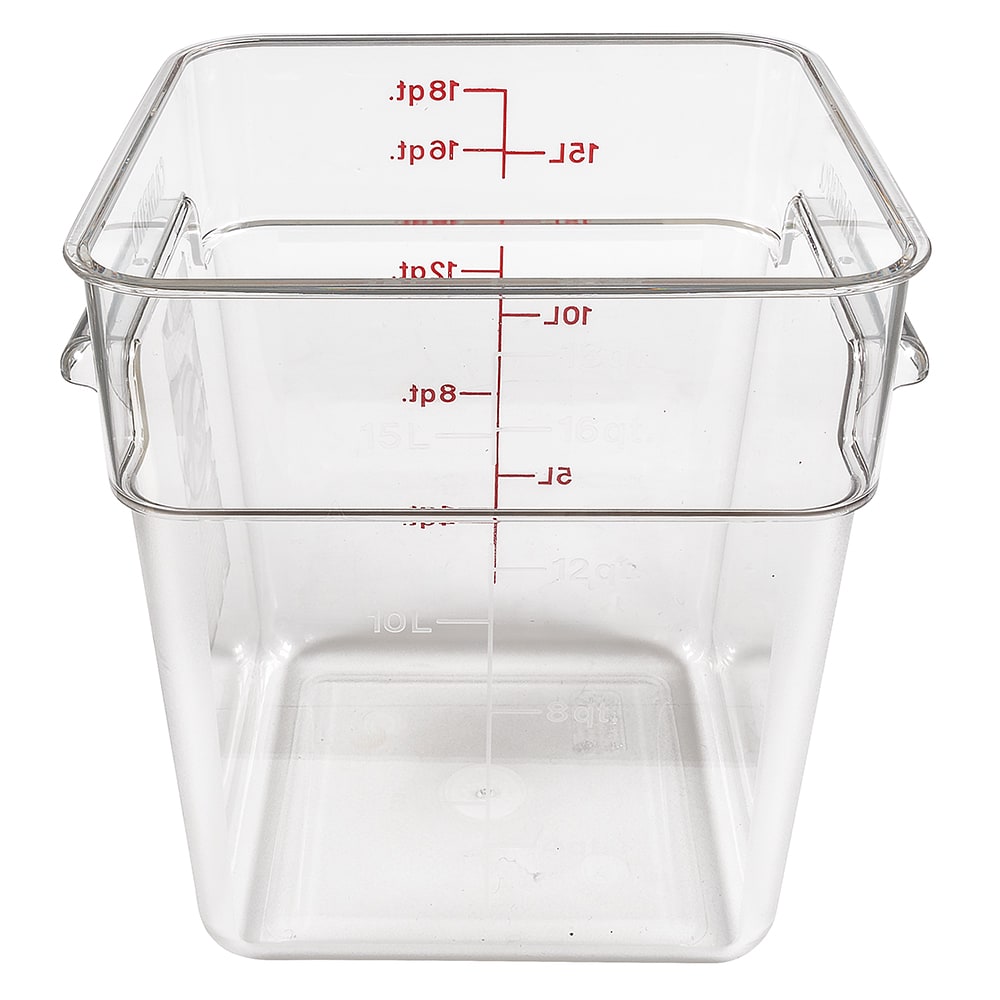 CamSquare Food Container, 18 qt., 11-1/4″L x 12-1/4″W x 12-5/8″H, with handles, red graduation, polycarbonate, dishwasher safe, resists stains & odors, clear, NSF