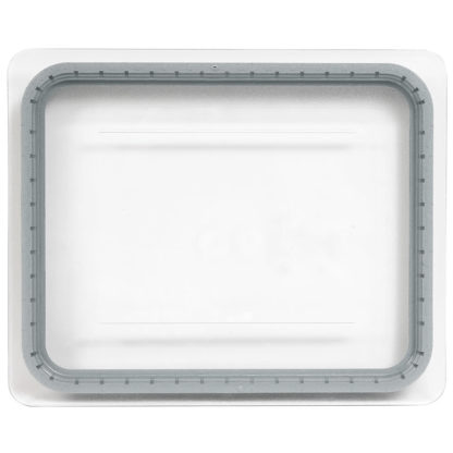 GripLid, fits GN 1/2 size food pan, 10-7/8″ x 12-3/4″, corner lift, dishwasher safe, stackable, molded in polyurethane gasket, polycarbonate, clear, FDA approved materials, NSF