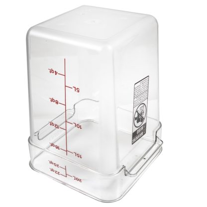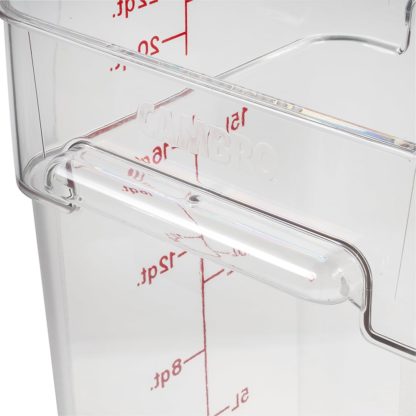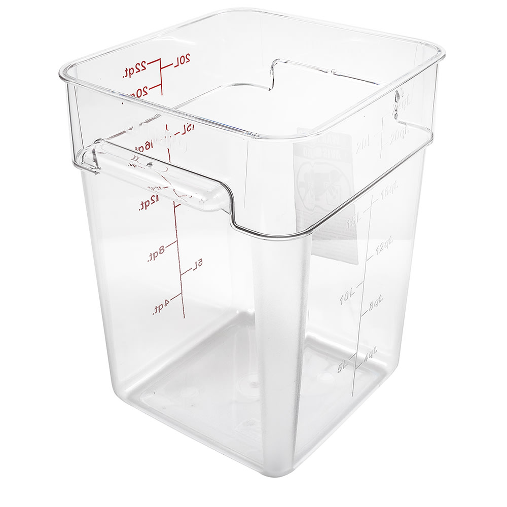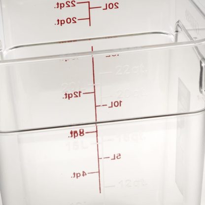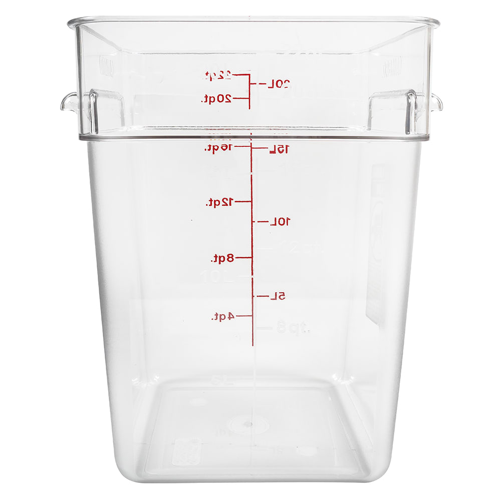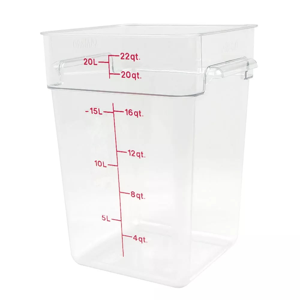 CamSquare Food Container, 22 qt., 11-1/4″L x 12-1/4″W x 15-3/4″H, with handles, red graduation, polycarbonate, dishwasher safe, resists stains & odors, clear, NSF