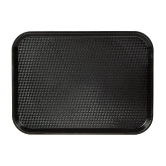 A non-skid surface on the Cambro 2900CT110 Camtread serving tray keeps glasses in place during transport. The tray is made of heavy-duty fiberglass. It can be washed in the dishmachine and comes in black satin.