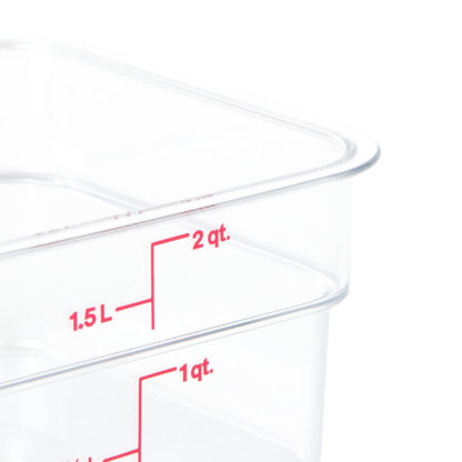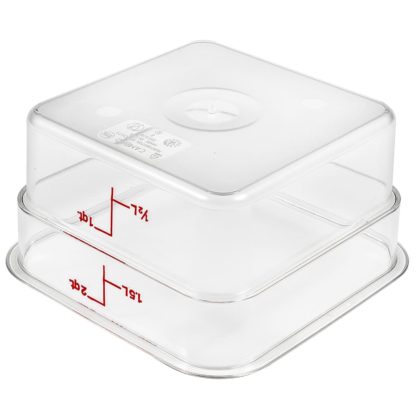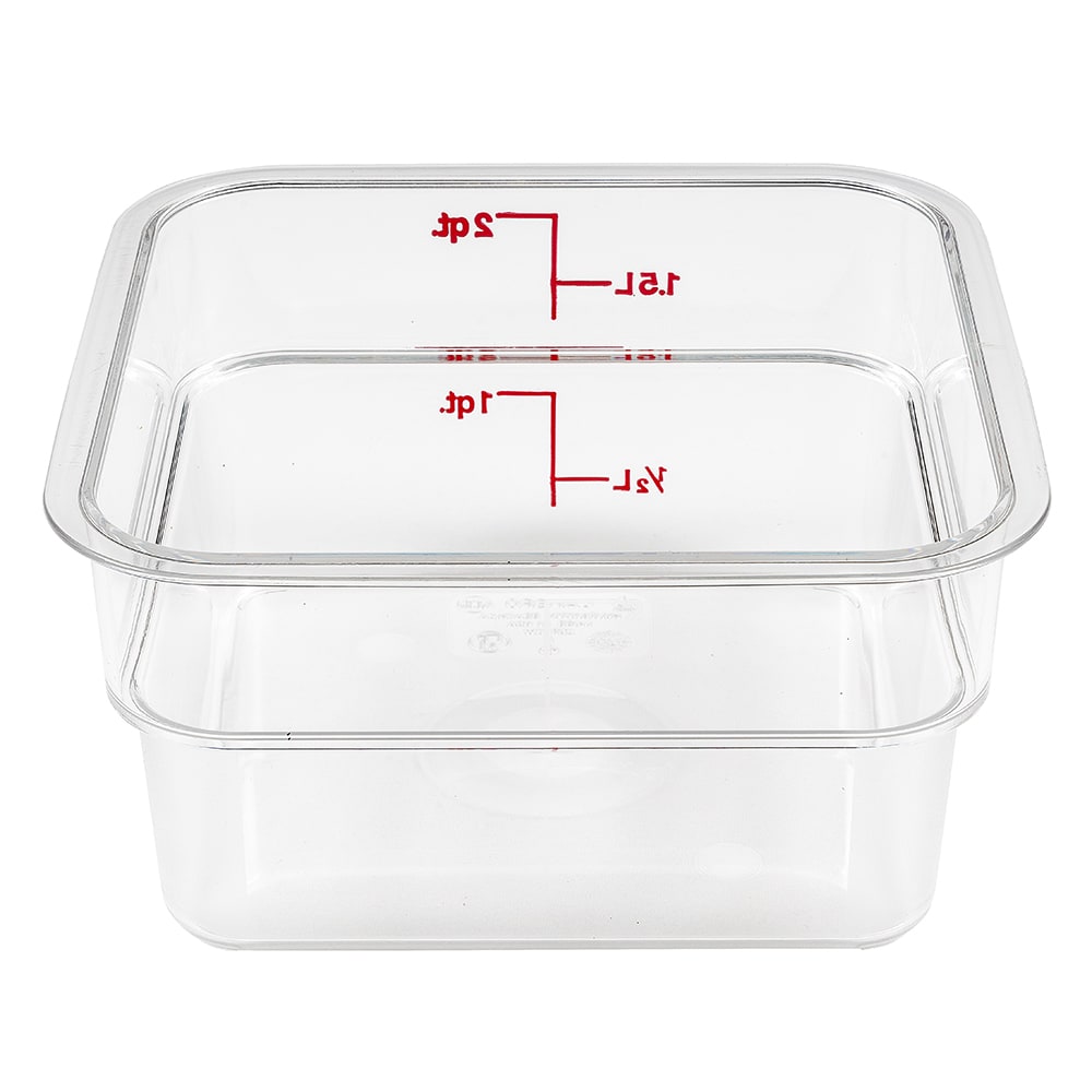 CamSquare Food Container, 2 qt., 11-1/4″L x 12-1/4″W x 8-5/16″H, with handles, red graduation, polycarbonate, dishwasher safe, resists stains & odors, clear, NSF