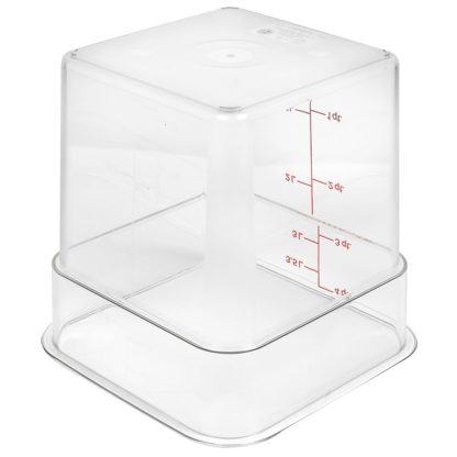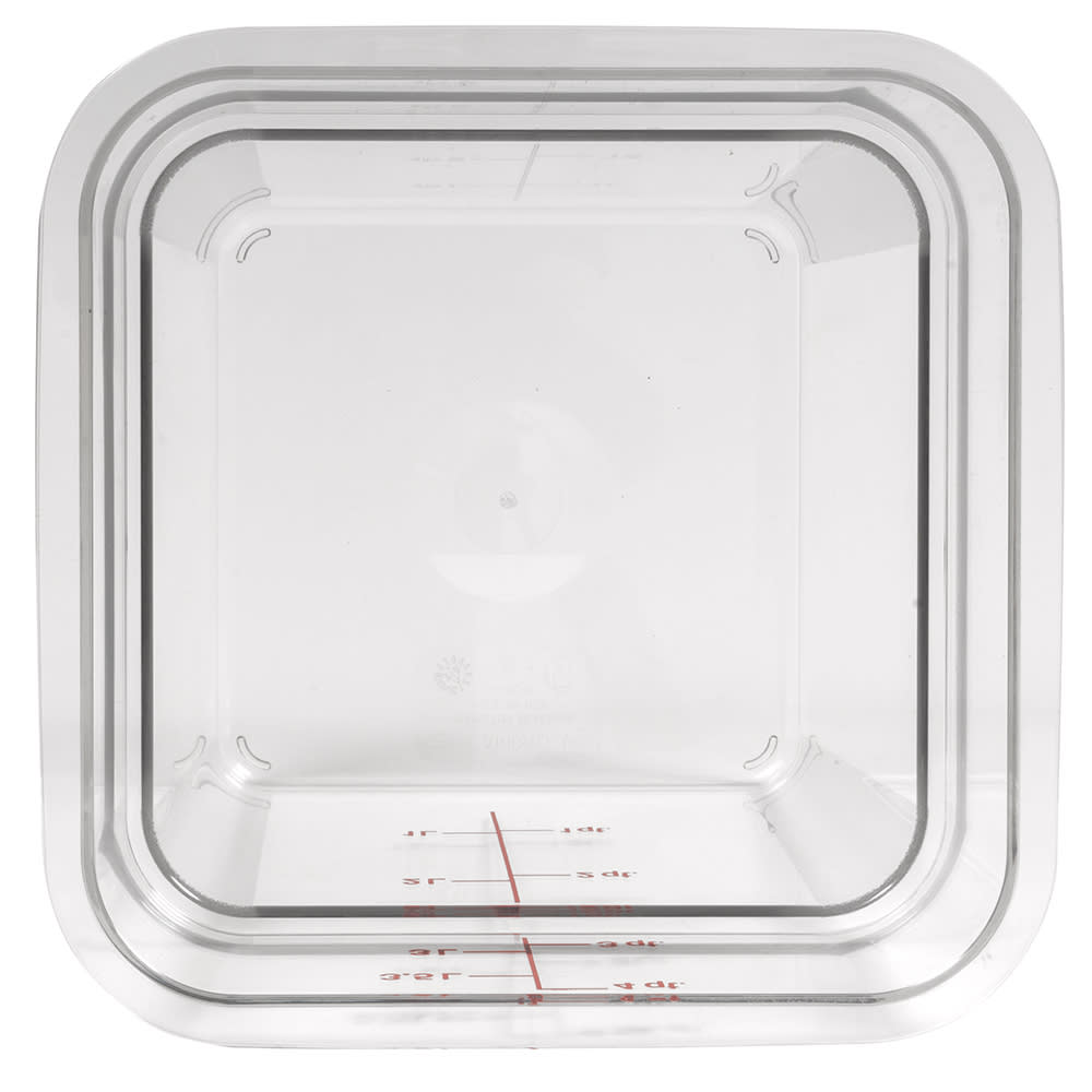 CamSquare Food Container, 4 qt., 7-1/4″L x 7-1/4″W x 7-3/8″H, red graduation, polycarbonate, dishwasher safe, resists stains & odors, clear, NSF