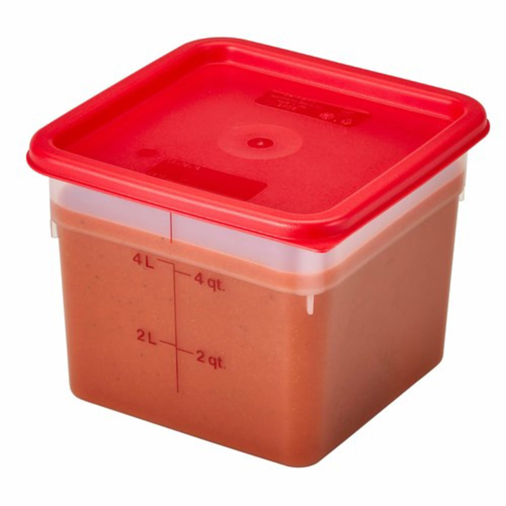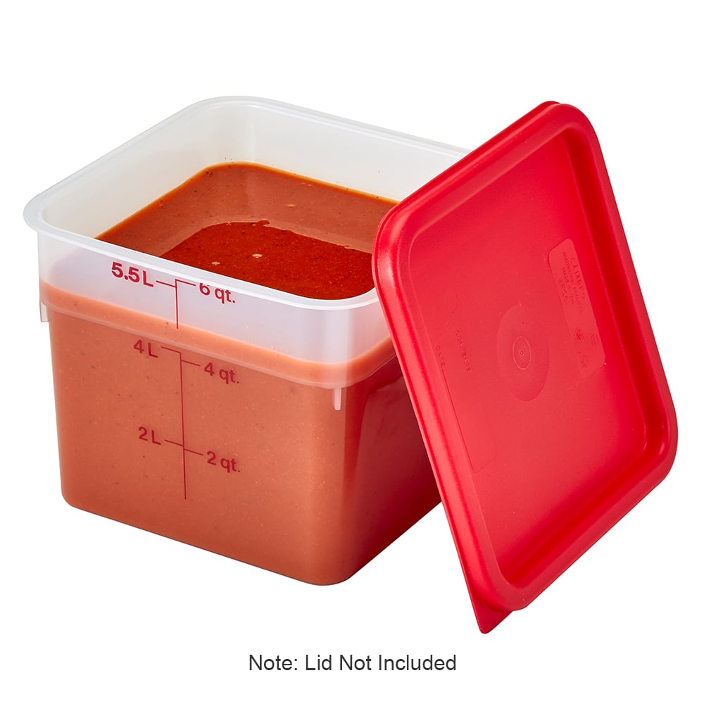 CamSquare Food Container, 6 qt., 8-3/8″L x 8-3/8″W x 7-1/4″H, red graduation, polypropylene, dishwasher safe, resists stains & odors, translucent, NSF