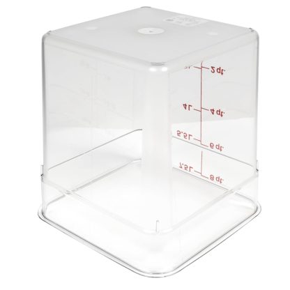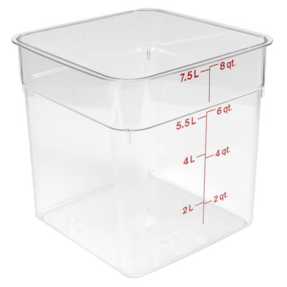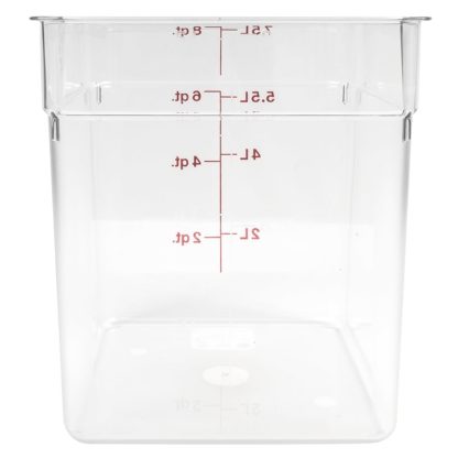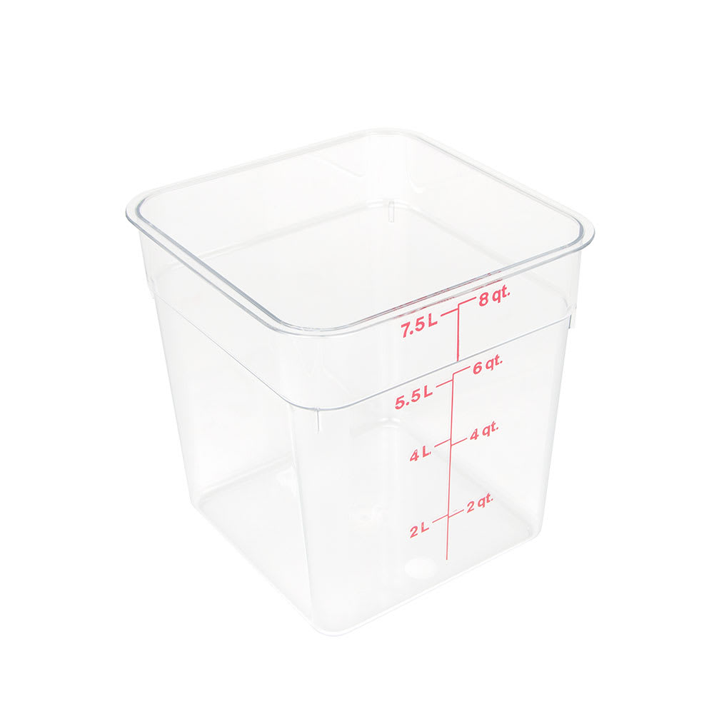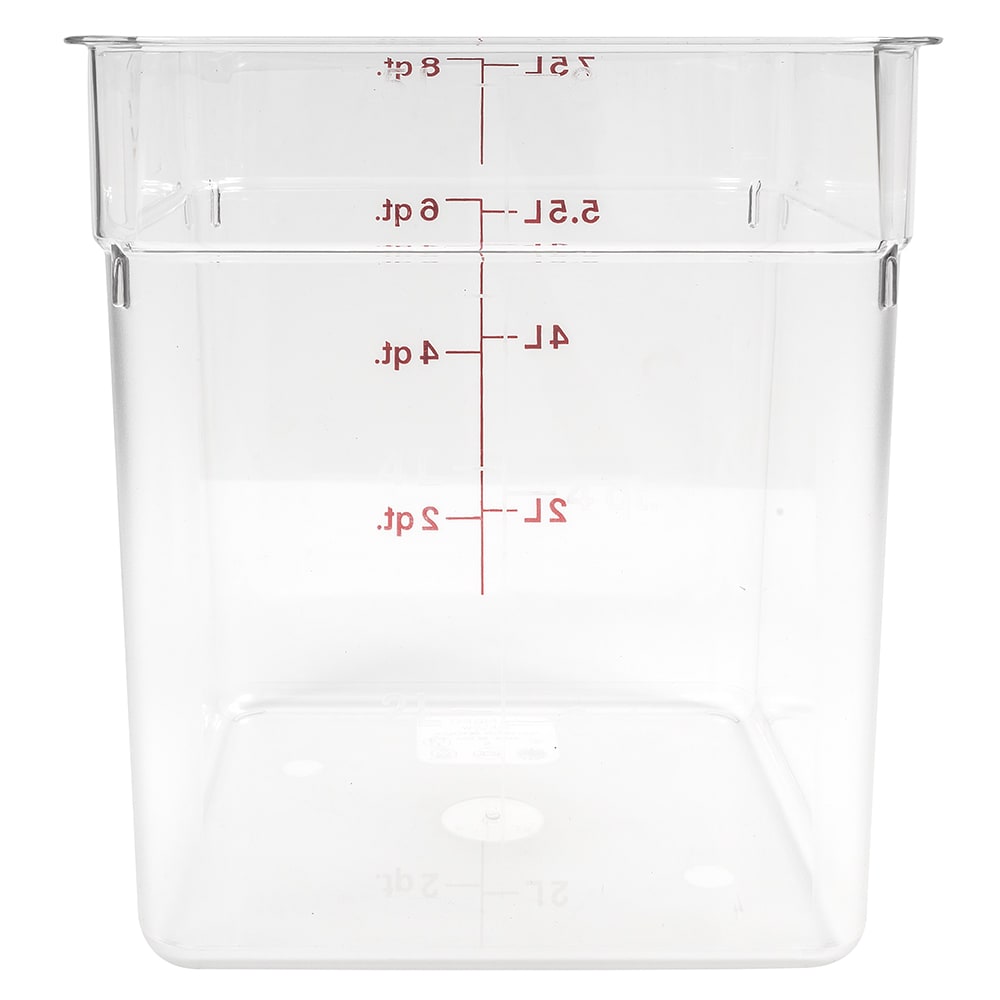 CamSquare Food Container, 8 qt., 8-3/8″L x 8-3/8″W x 9-1/8″H, red graduation, polycarbonate, dishwasher safe, resists stains & odors, clear, NSF
